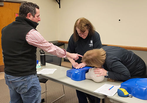 Led by Sgt. Leifker and Commander Przybyla of the NIU Department of Police and Public Safety, the COE Leadership Team learned the important skills necessary to save a life.