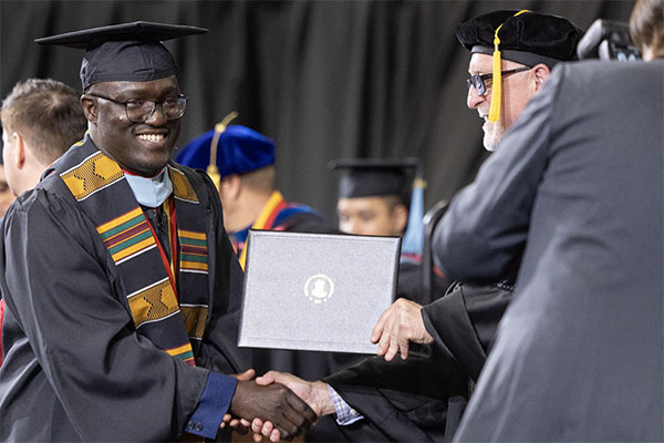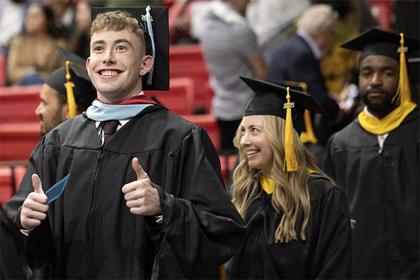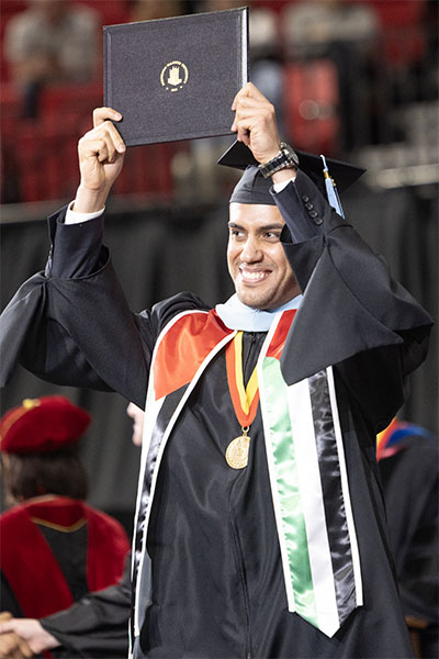 One of our graduates was featured in a video shown during the ceremony! Meet Matteo de Leon, who earned his B.S. in Kinesiology: